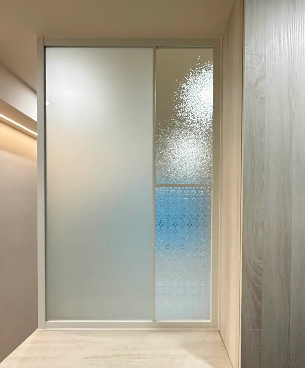 玻璃材質:5mm油砂強化玻璃+5mmd海棠花強化玻璃